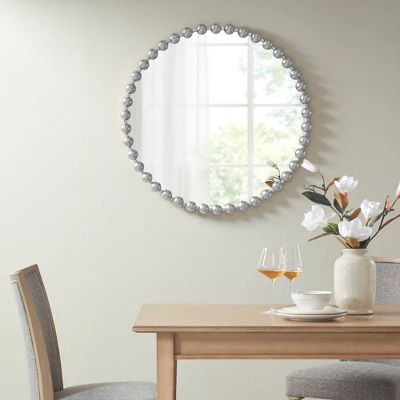 Reimagine your space with our Marlowe Decor Mirror. This round mirror features a stylized spherical iron frame finished with an antique metallic silver foil, creating a rich sheen and light speckled pattern effect. The keyhole hook fixture on the back of the mirror allows for effortless hanging on your wall. Incorporate this wall decor mirror into any room or space, for the perfect combination of modern glam and flair. Wipe clean with damp cloth and handle with care.